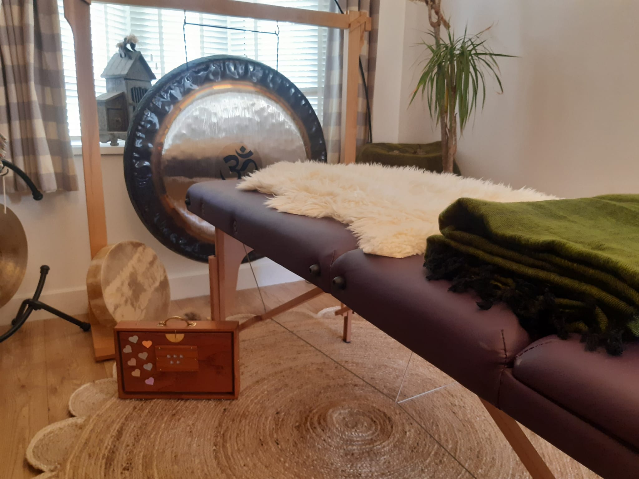 I work with many instruments including my voice, Crystal and Tibetan Bowls, Shamanic Drum, Gong, and Tuning Forks, both around, and directly on the body.